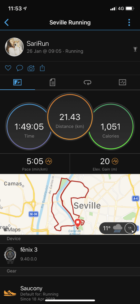I wasn’t tired and we started the test with a little sun, but it wasn’t very warm, but at this time the weather had changed, and I was warmer, and it was very nice for me. I took off my thermal shirt and I ran only with my short tri suit. I was running and I felt very good. I passed some girls in the start and also some boys finishing the lap. It was only 5 km. Two laps and I wanted to run more but I knew I was faster than I usually am when I train so I was happy.